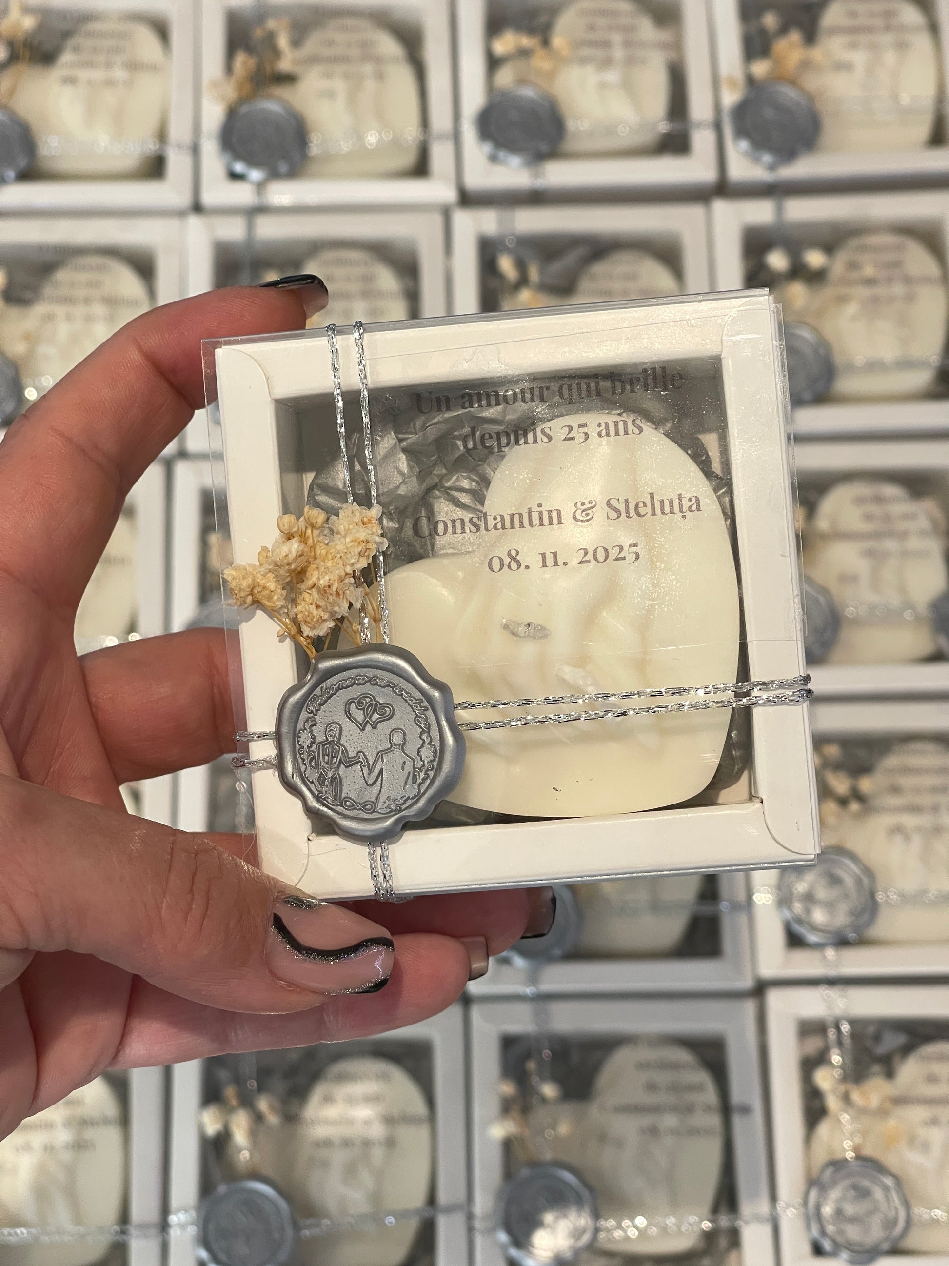 Cette bougie en forme de cœur avec mains entrelacées symbolise l’union, la tendresse et la gratitude 🤍.