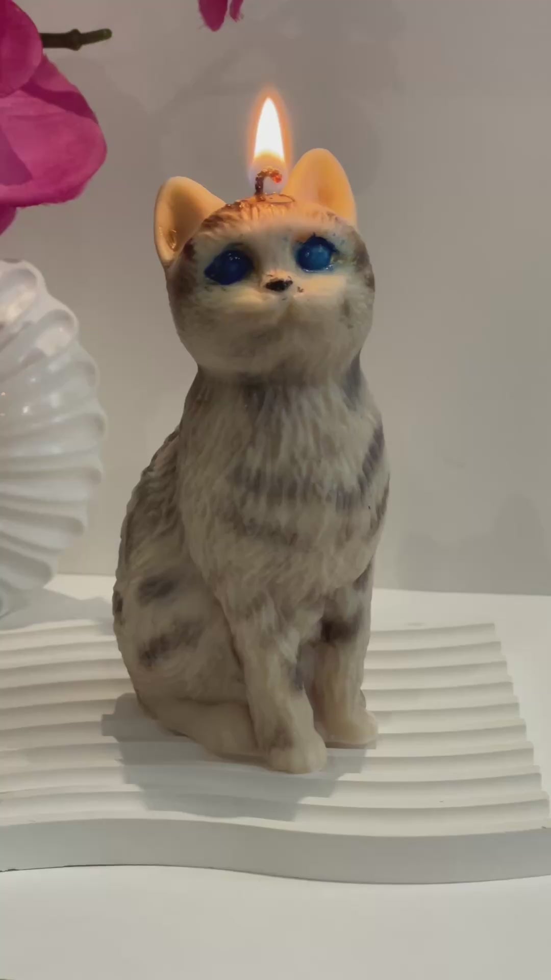 Apportez une touche de tendresse et de poésie à votre décoration avec notre bougie artisanale en forme de petit chat élégant. Disponible en gris clair et rose foncé, elle est parfaite pour une ambiance cosy, un cadeau original ou une décoration unique.
