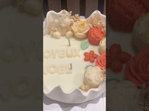 Bougie artisanale “Joyeux Noël” parfumée Grasse, coulée dans un vase en Jesmonite décoré à la feuille d’or. Fleurs sculptées, pièce unique. Vase réutilisable après la bougie.